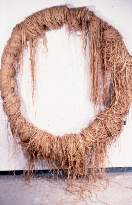 This is Cullen’s work, Untitled, made out of pink mesh.