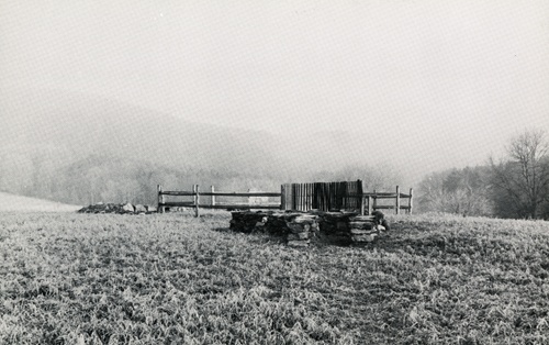 This postcard for Patsy Norvell’s solo exhibition at A.I.R. features her 1977 work Lifeline, a site-specific sculptural installation made from natural materials such as rocks, snow fences, and paint.